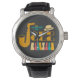 Uhr, Vintage Männeruhr mit schwarzem Lederarmband