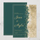 Classy luxury gold sparkle glitter Wedding invitation. Set against a deep green background,