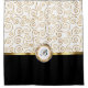Der elegante Duschvorhang in einem Monogramm-Design kann mit Ihrer eigenen Familie oder Namen Initial personalisiert werden. Entwickelt in Gold, Schwarz und Weiß mit einem abstrakten Muster, das eine Touch Klasse hinzufügt.
