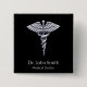 Classy Silver Caduceus Medical on Black Button