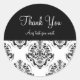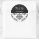 Hier ist ein klassisches Dankeschön-Aufkleber-Label mit einem schmucken Damask-Muster in elegantem Schwarz-Weiß, zusammen mit schönen Vorlagen, die Sie online personalisieren können. Entworfen für Business danke, es dankt Kunden, Hochzeit danke Ihnen, um Ihre Gäste zu danken, oder persönlichen Dank.