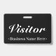 Dieses ausgeklügelte Abzeichen-Design beinhaltet die Meldung "Visitor" und einen benutzerdefinierbaren Firmennamen oder eine andere benutzerdefinierte Nachricht. Ein solches Abzeichen könnte dazu verwendet werden, zu identifizieren, dass jemand am Arbeitsplatz oder in einem Unternehmen ein autorisierter Gast/Besucher ist. [~Z0000307]