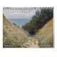 Januar: Sunrise (Marine), 1873 Februar: Frau mit Sonnenschirm, Madame Monet und Sohn, 1875 März: Wisteria, c. 1925 April: Springtime, 1872 Mai: Blume Beds at Vetheuil, 1881 Juni: Straße in La Cavee, Pourville 1882 Juli: The Doges Palace, 1908 August: Argentinienbrücke, 1874 September: Poppy Field in a Hollow near Giverny, 1885 Oktober: Hystacks, Mittag, 1890 November: Japanese Footbridge and the Water Lily Pool, Giverny, 1899 Dezember: The Magpie, 1868-69