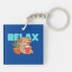 Cet adorable porte - clé présente un capybara de dessin animé assis dans une marmite orange à côté d'un plante vert. Le capybara tient un livre rouge et apparaît contenu, avec le mot "RELAX" au-dessus en lettres bleues et en gras. Ce porte - clé conviendra parfaitement aux amateurs de capybara et aux amateurs de farniente et de bouquinerie. Fabriqué à partir de matériaux de haute qualité, il est un accessoire agréable et durable pour vos clés, sac ou sac à dos.