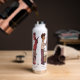 Eine Wasserflasche mit einem lustigen Cartoon über Katzen und den Teufel. Hintergrund, Bilder und Text können personalisiert sein. Originale Kunstwerke von DB Cartoon.