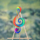 Clé musicale tirée de couches multicolores de couleurs arc-en-ciel sur l'arrière - plan blanc.
