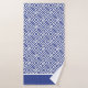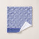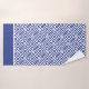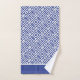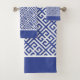 Serviettes de motif à clé bleue et blanche grecque avec détails rayés. Rideaux de douche coordonnés et tapis de bain disponibles.