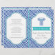 Clé grecque motif et bleu, colonne d'aqua Cérémonie de mariage grec et programme plié de fête avec un cadre avec bleu et aqua contour, une bordure de clé grecque ou Meander ou grec fret motif en bleu et blanc, une bannière turquoise et un bleu, aqua colonne grecque. Texte en gris. Ce design élégant et moderne aux éléments vintages et anciens est parfait pour un thème mariage grec et/ou grec, où qu'il se déroule en Grèce ou ailleurs. Vous devrez plier dans le centre pour avoir un programme plié. Choisissez seulement le type de papier de valeur comme il se plie bien.