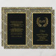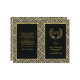 Cérémonie de mariage pliée et programme de fête avec initiales représentant une couronne de laurier et une bordure avec clé grecque ou Meander ou Grec fret motif en or et noir. Ce design élégant et vintage de l'ancien monde est parfait pour un thème mariage grec et/ou grec où qu'il se déroule en Grèce ou ailleurs. Il s'agit d'une partie modèle entièrement personnalisable d'un ensemble mariage. Il peut aussi être fait en grec ou en langage bilingue. Il faut le plier au centre. Choisissez seulement ce type de papier-valeur comme il se plie bien.