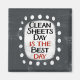 "Clean Sheets Day is The Best Day" ist ein niedliches Textdesign in Grau mit schwarzem und rotem Text. Die Wörter sind in weißer Akzent-Form, umgeben von niedlichen weißen, weißlichen, weißlichen Punkten, gehalten.