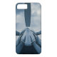 Nahaufnahme der Propeller des kleinen Kolbenflugzeugs vor dem Hintergrund eines dunklen Wolkenkratzes. Klare Requisite! Los geht's! Aviate, navigieren, kommunizieren!
