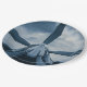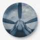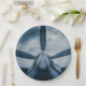 Nahaufnahme der Propeller des kleinen Kolbenflugzeugs vor dem Hintergrund eines dunklen Wolkenkratzes. Klare Requisite! Los geht's! Aviate, navigieren, kommunizieren!