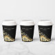 Schwarz-Gold-Illustration einer Musiktastatur mit Noten und goldfarbenen Sternen