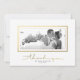 Customisez cette carte plat horizontale design moderne en Merci blanc, conçue avec du texte écrit à la main, merci sous une photo horizontale en faux cadre doré. Simple et élégant moyen de dire merci. Veuillez noter que l'or est une empreinte couleur (jaune) et n'est pas en fait de couleur or métallique ou de feuille d'or. L'arrière a un libellé : "Merci tant pour partager notre journée spéciale et célébrer ensemble le début de notre nouvelle vie. Nous apprécions vos voeux et votre don attentionné." Ce texte est entièrement personnalisable. Remplacez toutes les informations et l'image du modèle par la vôtre. Si vous avez besoin de modifications supplémentaires, cliquez sur le bouton Customiser ! ou contactez le concepteur. Pour de meilleurs résultats utiliser une image haute résolution, il peut être dans les couleurs, mais ce design semble particulièrement chic quand la photo est noir et blanc. *Crédits photo Modèles © par Timothy Marsee