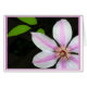 Une fleur de clematis brillante est montrée hors du centre et équilibrée par ses feuilles.