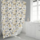 Duschvorhang aus goldgelben und graufarbenen Wasserfarben. Grosses Blumenmuster-Design aus Studio Posies. Eine Badematte mit dem gleichen Muster ist auch zum Mischen und Abgleichen verfügbar.