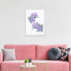 Dieses digitalisierte, grafische Foto, von Clematis, Blume Blüten, hervorgehoben in, Schattierungen von Lavendel, lila und blau angezeigt unter, lebendig, grün, Blätter und Stiele.