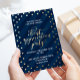 Traditionelle Streifen werden durch skurrile Imitate mit Goldfolien-Punkten auf dieser Feier-Einladung mit einem lustigen Kalligraphieskript betont.