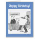 Grosse carte d'anniversaire amusante qui sera appréciée par toute personne qui travaille en comptabilité ou en finance peut-être. L'image montre un comptable surpris à son a Client arriver à son bureau avec une énorme banque Piggy. Personnalisez avec votre propre message.