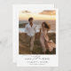 Machen Sie Ihre Hochzeitsankündigung unvergesslich mit einem atemberaubenden Foto am Strand, gerettet auf dem neuesten Stand. Dieses elegante, zweiseitige Design präsentiert ein bleichfreies Foto-Layout gepaart mit fließender Kalligraphie-Schrift für ein romantisches, modernes Ambiente. Diese minimalistische und dennoch stilvolle Karte verbindet den Charme des Hauses mit klassischer Eleganz und eignet sich perfekt für Hochzeiten in Urlaubsort oder Strandurlauber. Ideal für das digitale Teilen oder Drucken, ist es eine schicke Art, Ihre Liebe zu teilen und Ihre Gäste Save the Date für Ihren großen Tag zu sichern.