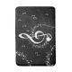 G Clef unter den weißen Noten der Musik auf schwarz. Der schwarze Hintergrund macht die hellen weißen Noten Pop.