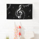 G Clef unter den weißen Noten der Musik auf schwarz. Der schwarze Hintergrund macht die hellen weißen Noten Pop.