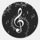 G Clef unter Noten von Musik auf schwarz. Der ebonische Hintergrund macht die hellen weißen Noten Pop. Schwarz-Weiß-Musik