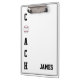 Diese Zwischenablage ist in einem Sportbaseballtrainer und individuelle Name-Design gezeigt. Passen Sie dieses Element an und ändern Sie den Namen in Ihren Namen. Bild