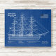 Flying Cloud Clipper Rekordbrecher Tall Ship für die schnellste Passage zwischen New York und San Francisco und Australien Holzhandel. Schiffskonzept Zeichn von Plänen oder Schematiken mit der Kontur für den Flying Cloud Clipper