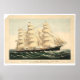 Die Bancroft Library präsentiert: Starboard-seitige Sicht auf das dreiteilige Segelschiff, US-Flagge am Heck, Arbeiter und Ausrüstung an Deck .