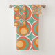 Cet ensemble de serviettes a un design moderne du milieu du siècle de cercles concentriques dans les couleurs des années 1970 avec des étoiles entre chaque groupe.