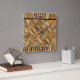 Basket weave pattern in brick design of wall photograph. Red, Orange, and shades of yellow in the brick colors. White numbers have a drop shadow effect.