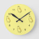 Owl drawing.Outline of owl with dark yellow wings. Image sits at 12, 3, 6, and 9 positions. Background in light yellow.