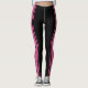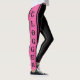 Zeigen Sie Ihre Liebe für das Clog Tanzen mit diesen niedlichen rosa-schwarzen Leggings. Das Design beinhaltet das Wort "CLOGGER" an der Außenseite jedes Beins auf einem rosa Hintergrund. Es umfasst auch schwarze Streifen.
