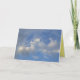 Eine geklappte Grußkarte mit einem Bild von Wolken und Himmel darauf, Farbe Gelb und Leere innen.