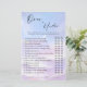 Infuse les festivités nuptiales avec la lévité en utilisant les cartes de jeu fantasques Cloud 9 Over ou Under! Chaque carte enrobée de nuages posera des questions numériques aux invités : les photos d'envoi auront-elles lieu plus ou moins de 30 minutes ? Le nombre de premières chansons de danse jouées est supérieur ou inférieur à 3 ? Déployez ces cartes qui suscitent de vives spéculations et des rires. Connectez-vous au-dessus des devinettes tandis que les motifs nuageux soulèvent l'état d'esprit joyeux de toute mariée. Les cartes blanches simplement élégantes se concentrent sur le plaisir sans compromettre aucune esthétique design. Ne négligez pas d’inclure cette activité qui donne un ton jovial célébrant les rêves d’amour se réalisent dans le ciel. Laissez les invités sourire et se rappeler des prédictions enthousiastes avec ce jeu de chiffres optimiste qui honore la joie radieuse de la future mariée. Parfait pour les douches sur le thème "nuage 9" !