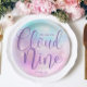 Cloud 9 Baby Dusche Papier Teller. Wir sind auf Cloud neun Platte für Sie, um für die perfekte Veranstaltung personalisieren. Lila rosa Party Platte für Wolke und Himmelsdusche. Mit Wolken, Himmel und Sternen. Moderne und elegante Aquarelltafeldekoration, die digital gestaltet wurde. Karo mit ähnlichen Cloud-Themen-Party-Vorräten durch Besichtigung der Cloud Nine Baby Dusche Kollektion.