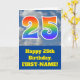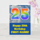 An der Vorderseite dieses lustigen 25. Geburtstagskarten-Designs steht eine Darstellung eines wolkigen blauen Himmels, zusammen mit der Zahl "25" mit einem bunten Regenbogenspektrum wie Gradientenmuster. Auf der Vorderseite befindet sich auch eine Geburtstags-Grußbotschaft mit einem bearbeitbaren Empfängernamen. Im Inneren befindet sich eine individuell angepasste Geburtstagsgrüßbotschaft, oder man könnte sie löschen und leer verlassen werden, wenn eine Nachricht von Hand geschrieben werden soll. Eine individuell anpassbare Geburtstagskarte wie diese könnte eine lustige Art sein, jemandes fünfundzwanzigsten Geburtstag anzuerkennen. [~Z0000370]