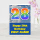 Die Vorderseite dieses lustigen 28. Geburtstagskarten-Designs zeigt eine wolkige blaue Himmelsdarstellung, zusammen mit der Zahl "28" mit einem farbigen Regenbogenspektrum wie Gradientenlook. Auf der Vorderseite befindet sich auch eine Geburtstags-Grußbotschaft, die auch einen benutzerdefinierten Empfängernamen enthält. Im Inneren befindet sich eine benutzerdefinierte Geburtstagsgrüßbotschaft, oder man könnte sie löschen und leer verlassen werden, wenn eine Nachricht von Hand geschrieben werden soll. Eine individuell anpassbare Geburtstagskarte wie diese könnte eine lustige Art sein, jemandes achtundzwanzigsten Geburtstag anzuerkennen. [~Z0000370]