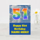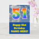 Cloudy Blue Sky, Regenbogenmuster "51" Geburtstag Karte