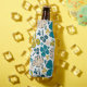 Clover Kleeblatt Grün Gelbes Muster St. Patrick`s Day Flasche Cooler. Handgezeichnet Nelken mit vier Blätter für das Glück in Grün und Gelb.