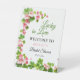 Begrüßen Sie Ihre Gäste mit einer Touch moderner Launen in Ihrem St. Patrick's Day-Brautparty mit diesem köstlichen Begrüßungsschild "Glück in Liebe". Dieses Podestschild bietet einen frischen und stilvollen Einstieg in die traditionelle irische Bildsprache, der über das typische Grün und Gold hinausgeht. Stattdessen zeichnet es sich durch eine zauberhafte und unerwartete Farbpalette von grünen und rosa Kleeblatten aus, die dem Anlass eine frühlingshafte und feierliche Atmosphäre verleihen. Die fröhlichen Nischen sind kunstvoll angeordnet, um einen dekorativen Rahmen zu schaffen, der die links Seite und die oberen Ränder des Schildes schmückt. Dieses durchdachte Gestaltungselement begrüßt nicht nur die Teilnehmer, sondern vermittelt auch visuell die fröhliche und festliche Atmosphäre des Brautparty.