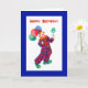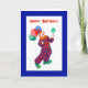 Eine helle und fröhliche altersspezifische Geburtstagskarte für 8-Jährige, mit einem Clown, der Ballons trägt, aus einer handbemalten Illustration von Judy Adamson. Bitte ändern Sie den Insider-Text nach Ihren Wünschen.
