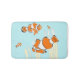 Diese hübsche Badematte sorgt mit einer exotischen Touch für ein angenehmes Bad. Grosser, orangefarbener und weißer Clownfisch, der im Unkraut in einem sehr blauen Meer schwimmt.