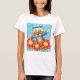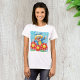Ein lustiger glücklicher Clown unter gelben Blumen mit Gesichtern. Dieses Design wirkt wirklich effektiv auf diesem Frauen-T - Shirt