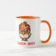 Ein wütend aussehendes Huhn mit dem Begriff "Haufen ab" auf einer Kaffeezubereitung