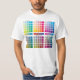 Hier gerade ist das Shirt für die Prüfung Ihrer Farben. Eine volle Verbreitung der definierten und beschriebenen FarbMuster. C-Cyan-blaues, M-Magentarotes Y-Gelbes, K-Schwarz.