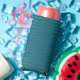 Seltzer Can Cooler Koozie Sleeve gedruckt mit Coastal Beach Salty Turquoise Wave Abstract Design Wiederholung Muster Original-Kunstwerk Illustration von TheFabricSeal Print on Demand Shop unter Zazzle.com #ZazzleMade https://www.zazzle.com/store/thefabricseal TheFabricSeal ©️ Original. Moderne zeitgenössische Kunst, künstlerisch entworfen und gedruckt für Ihr Stranddesign Zuhause und Wohnaccessoires, Wohngestaltung, Modeerklärungen, modernes elektronisches Accessoire und Geschenktöne. Das ist ein wirklich cool aussehendes, vierteiliges Wiederholmuster, das die Illusion von türkisfarbenen Zebrafellstreifen aufweist. Dieser Pop mit dem Thema Strand an der Küste bietet viele Farbtöne, darunter blaues Türkis, aquamarin, Meeresschaum, Aqua, Cyan, Zeleste, Opal, Aquamarine, Jade, Karibik, Tropen, Islander, Meerwasser und arktische Gletschereispalette auf einem dunkeltürkisfarbenen Hintergrund.