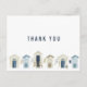 Zeigen Sie Ihren Gästen, wie sehr Sie schätzen ihre Anwesenheit und Geschenke mit dieser Küstenstrandhochzeit danke Ihnen Karten. Einfaches Strandhaus-Design in einer beruhigenden Blau-Weiß-Farbpalette, fügen Sie Ihre Rücksendeadresse und danke Ihnen, dass Sie die Nachricht auf der Rückseite.