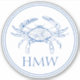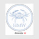 Diese an der Küste inspirierten Aufkleber verfügen über eine klassische Küstenkrabbe in Blau und Weiß mit einem Monogramm, das Sie mit Ihren Initialen personalisieren können.
